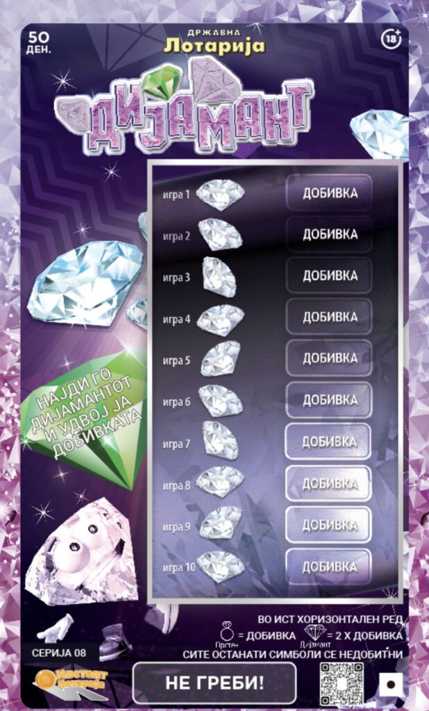 Инстант лотаријата денес претставува една од најпопуларните и најдостапни забавни игри кај играчите низ земјата. Со големи фондови, разновидни теми, забавни начини за игра и возбудливи добивки, секој од лозовите носи свој посебен печат и можност за радосно изненадување. Во сегашната понуда има 10 лоза и секој од нив има многубројни среќни приказни.