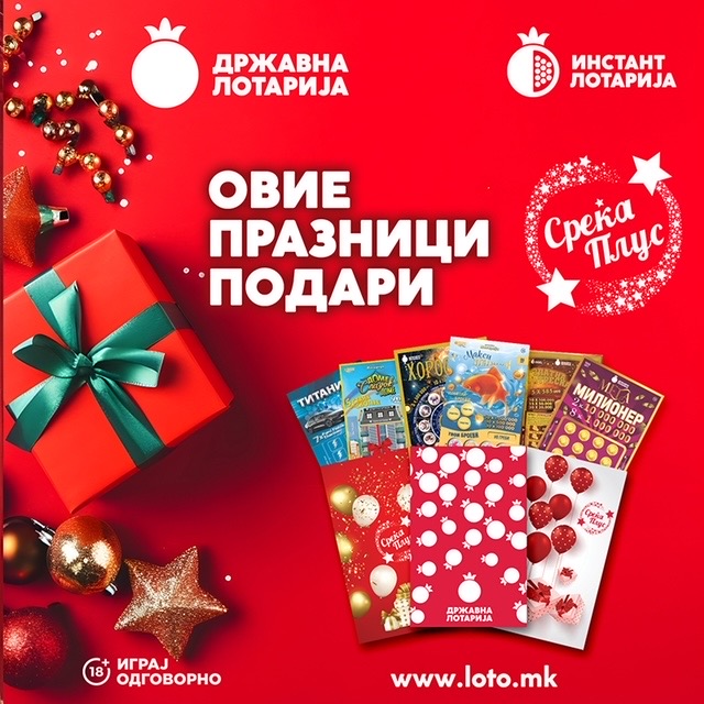 Во еден коверт „Среќа плус“ се кријат можности за исполнување на многу новогодишни желби – сопствен стан, автомобил, мотор и големи парични добивки. Инстант лотаријата ја дополнува магијата на празниците, носејќи ја шансата соништата да се претворат во реалност.